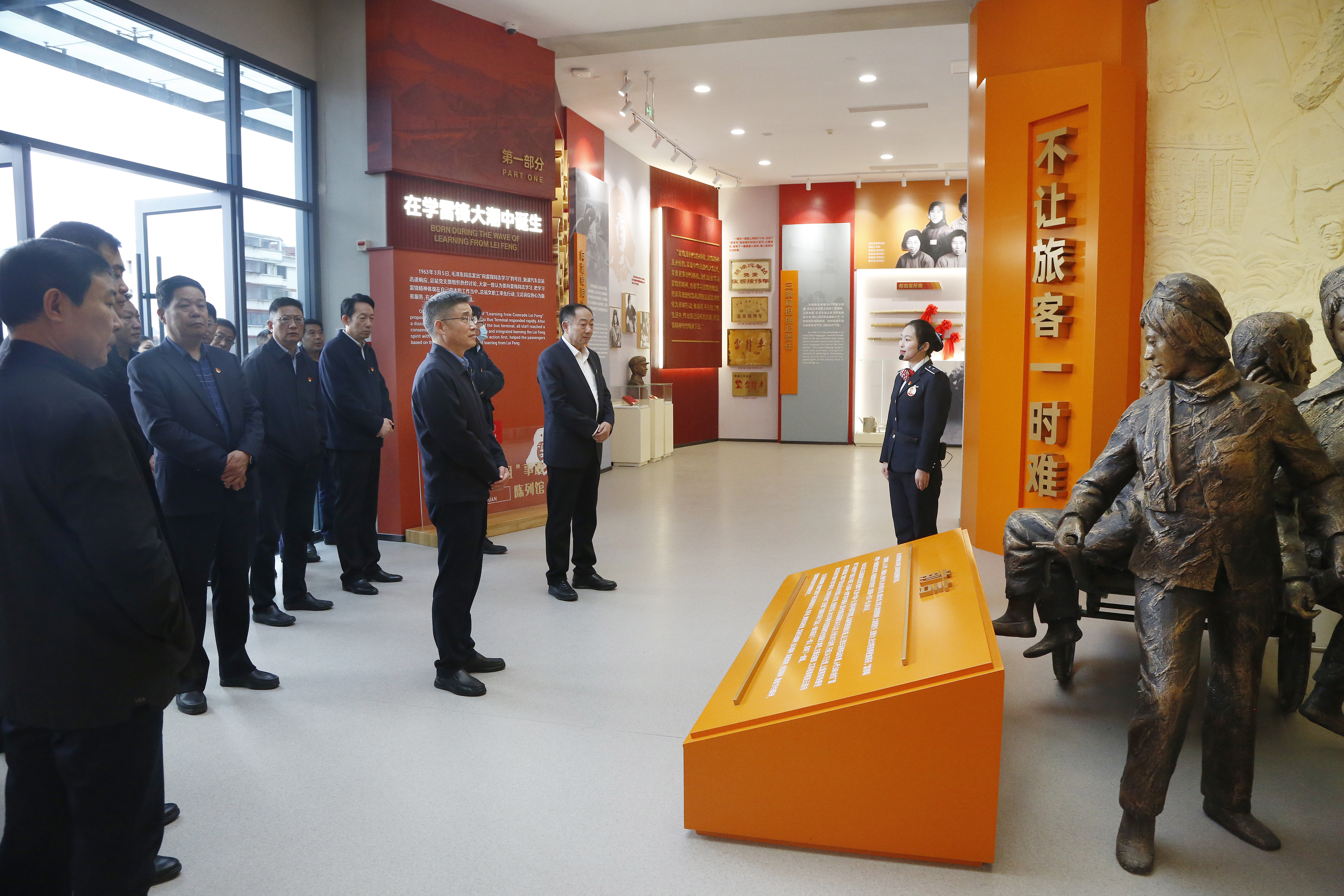 在“雷鋒車(chē)”事跡陳列館,通過(guò)講解員生動(dòng)地解說(shuō),黨員干部全面了解了“雷鋒車(chē)”組60年如一日,堅持不懈學(xué)雷鋒,全心全意為人民服務(wù)的先進(jìn)事跡,深刻領(lǐng)悟“雷鋒車(chē)”組堅守初心、接續奮斗的擔當精神;助人為樂(lè )、為民服務(wù)的奉獻精神;團結協(xié)作、恪盡職守的敬業(yè)精神;奮發(fā)向上、勇?tīng)幰涣鞯倪M(jìn)取精神。