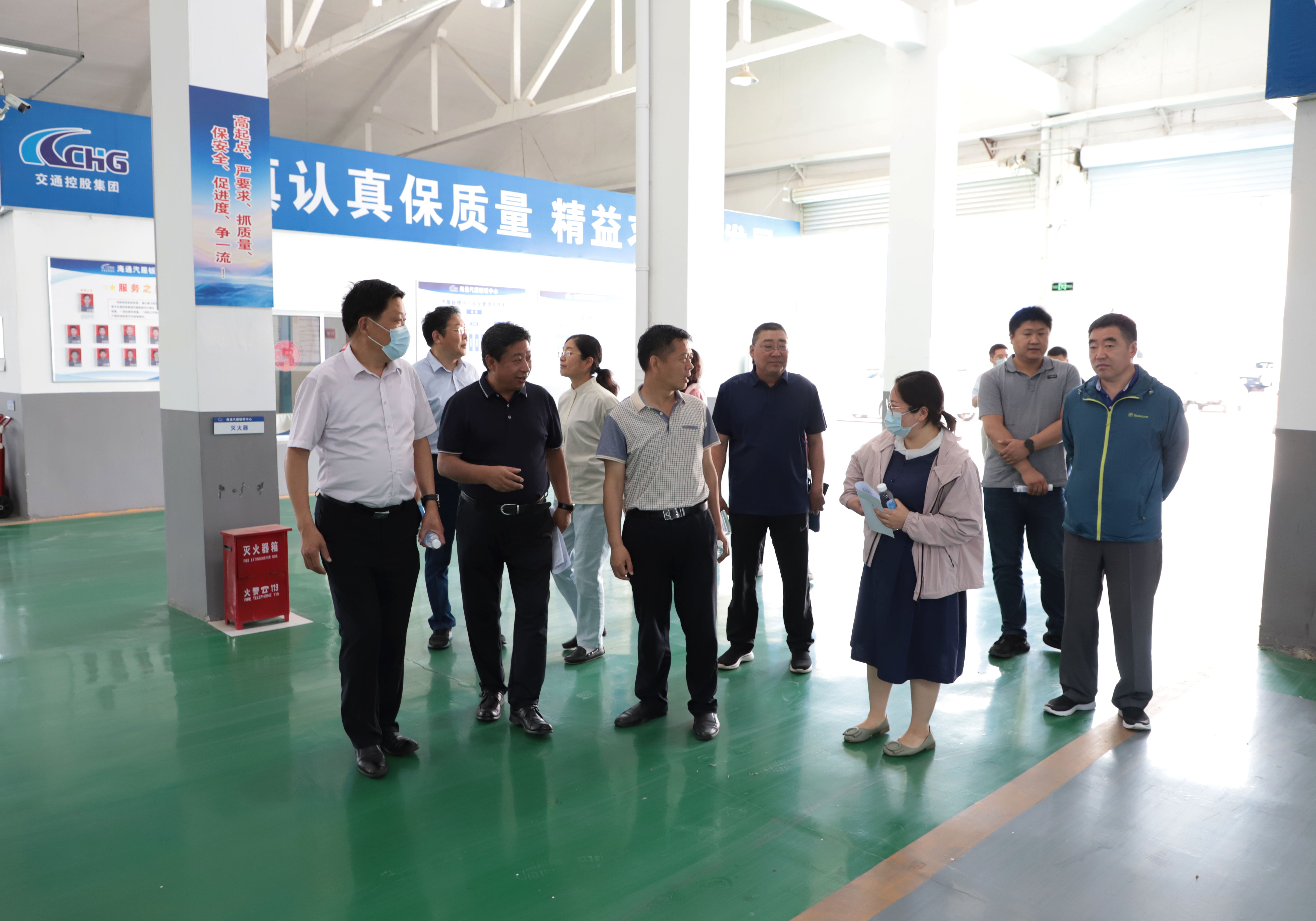 6月8日上午,連云港市政協(xié)副主席徐善明一行及連云港市生態(tài)環(huán)境局相關(guān)領(lǐng)導到汽服修理事業(yè)部鈑噴中心,調研“汽修”綠島項目。交通控股集團副總經(jīng)理李樹(shù)軍,汽服公司黨委書(shū)記、總經(jīng)理趙立喜參加調研。