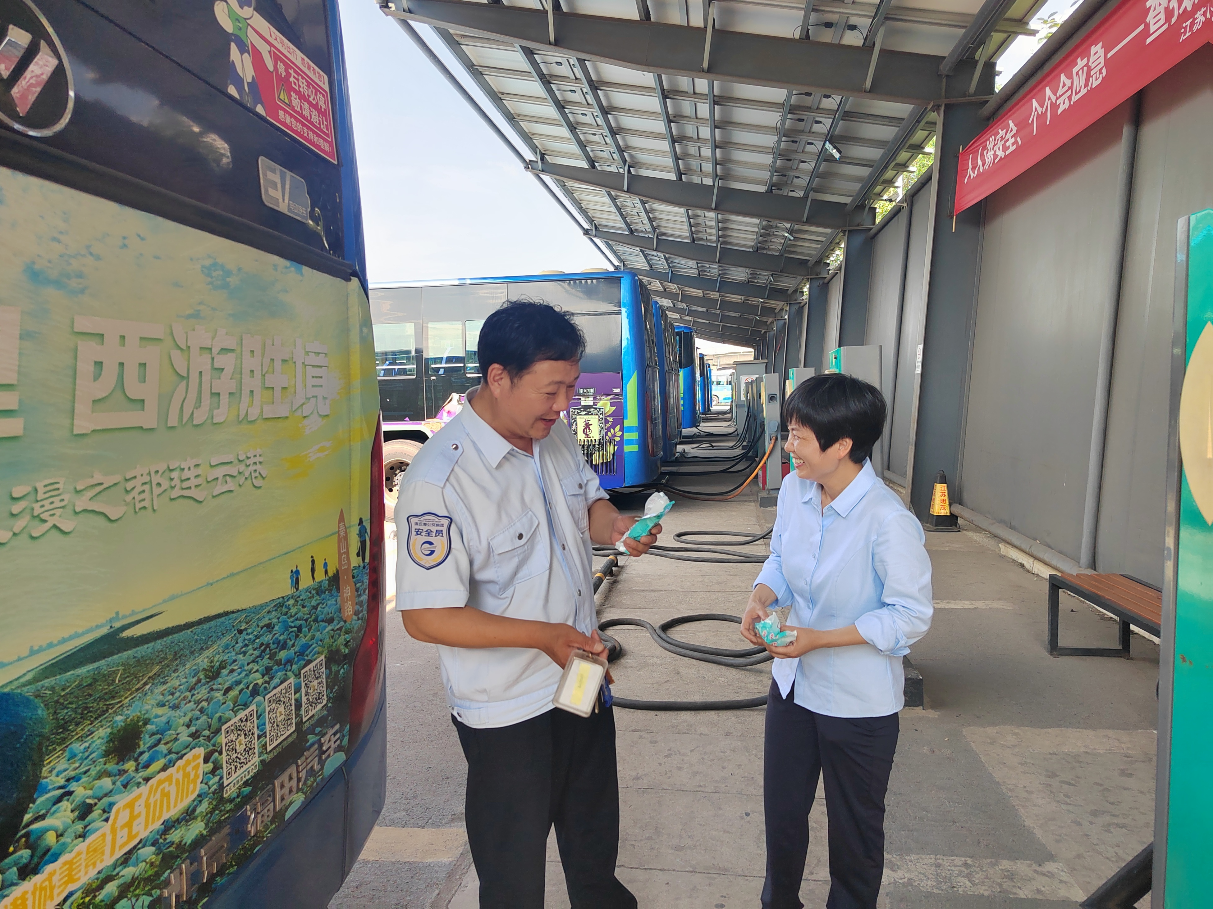 烈日炎炎,暑氣蒸騰,近期我市持續高溫,東部城區更是處于“桑拿模式”。為關(guān)心關(guān)愛(ài)一線(xiàn)員工,7月2日,公交集團東部公交公司支部書(shū)記、經(jīng)理張作和工會(huì )主席王玉紅帶領(lǐng)班子成員深入各場(chǎng)站、站點(diǎn)開(kāi)展夏季送清涼活動(dòng)。