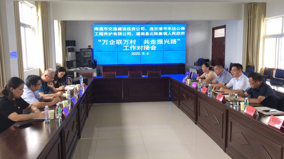 為積極服務(wù)鄉村振興戰略,8月6日,豐達養護公司與南通交通建設投資公司、灌南縣北陳集鎮人民政府在灌南縣北陳集鎮召開(kāi)了“萬(wàn)企聯(lián)萬(wàn)村,共走振興路”工作對接會(huì )。南通交通建設投資公司副書(shū)記張燕濱、豐達養護公司總經(jīng)理王梁洲和北陳集鎮人民政府黨委書(shū)記周倍良等相關(guān)人員參加了會(huì )議。