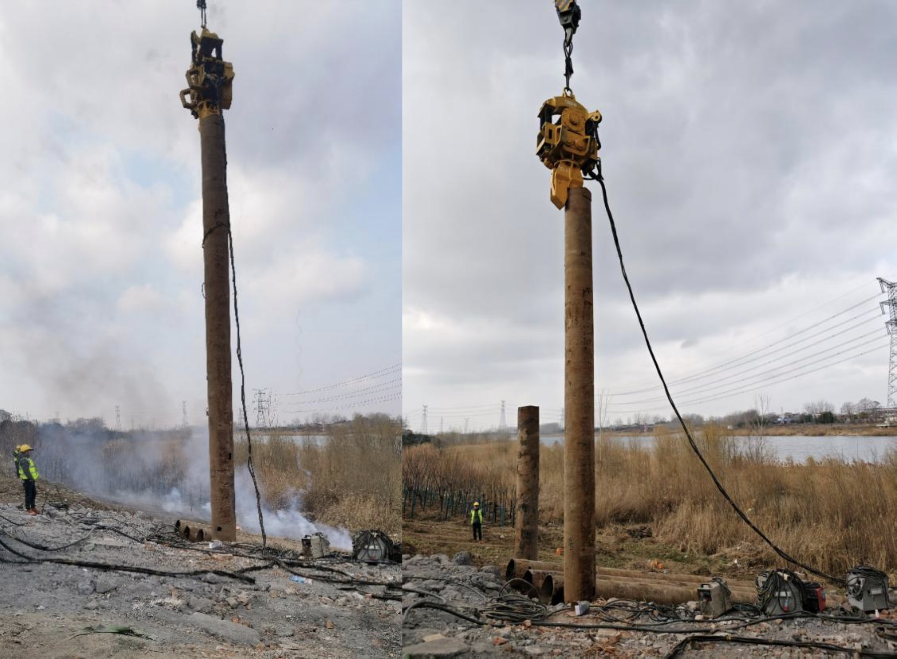 在施工現場(chǎng),打樁作業(yè)無(wú)疑是整個(gè)施工的關(guān)鍵環(huán)節。施工人員身著(zhù)統一且醒目的工作服,頭戴安全帽,嚴守崗位,各司其職。打樁機高大的機身矗立在施工現場(chǎng),隨著(zhù)樁錘的震動(dòng),一根根鋼管樁被精準地打入地下?,F場(chǎng)指揮人員通過(guò)對講機與樁機操作人員保持實(shí)時(shí)溝通,密切關(guān)注打樁的各項參數,確保每一根鋼管樁的垂直度和入土深度都嚴格符合設計要求。當遇到地下復雜地質(zhì)狀況,施工團隊及時(shí)調整施工工藝,有效克服困難,保障施工進(jìn)度的順利推進(jìn)。