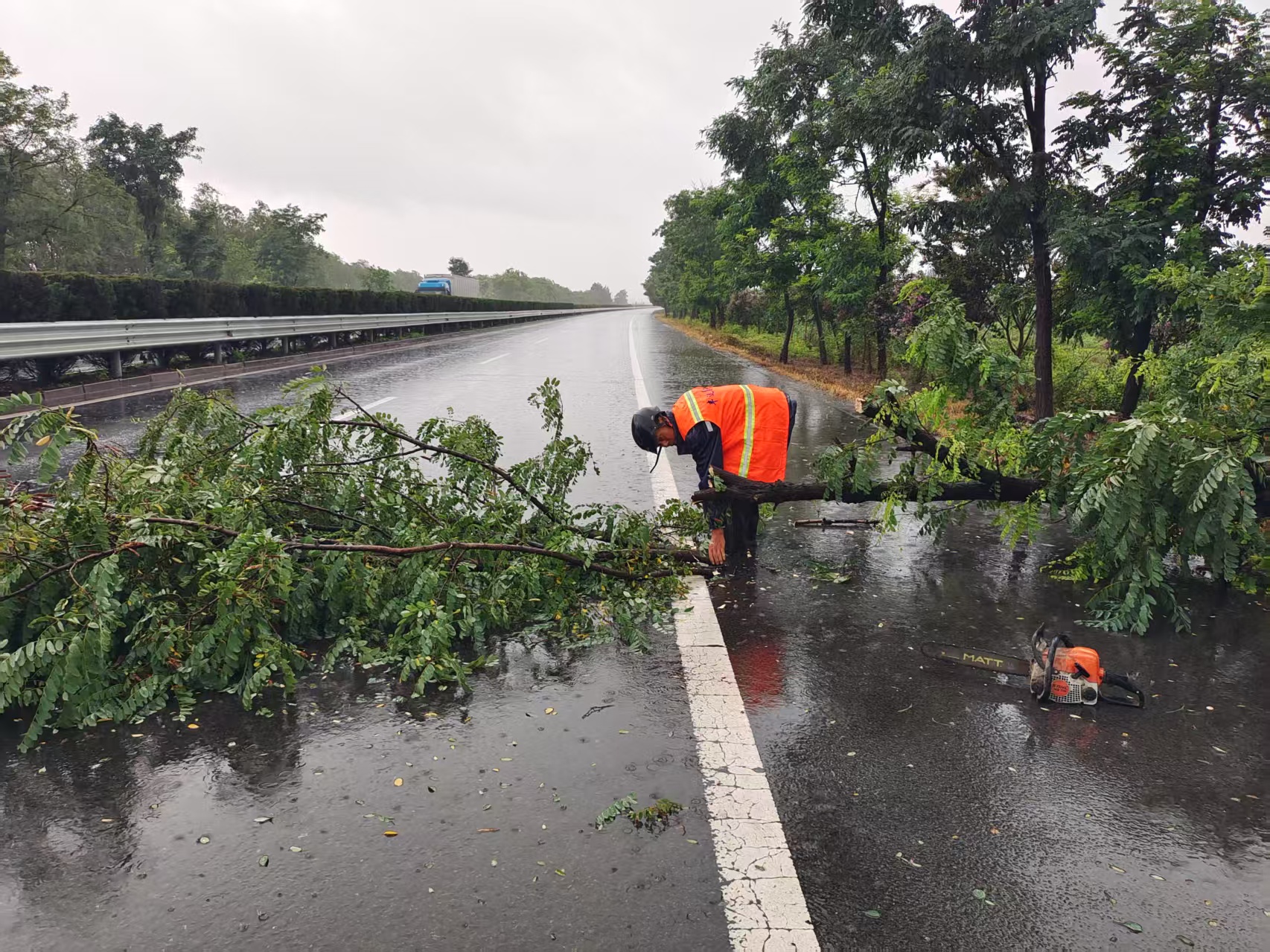 截至7月31日下午5時(shí),豐達公司累計巡查道路700公里,處置路面雜物120處,疏通排水52處,清理倒伏樹(shù)木56棵,有效確保了國、省干線(xiàn)及高速公路的安全暢通。